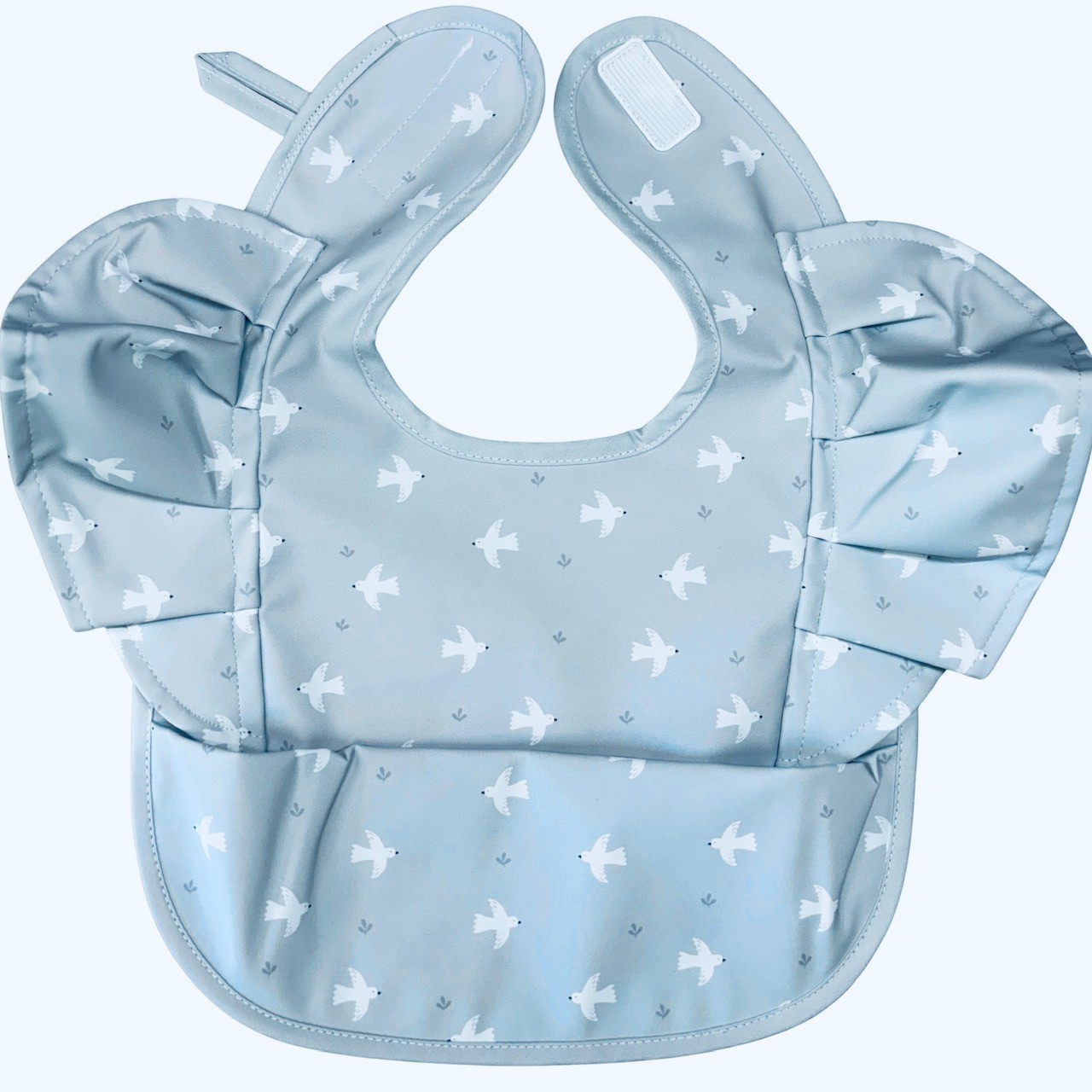 Αδιάβροχη Σαλιάρα με Βολάν – Γαλάζια με πουλιά